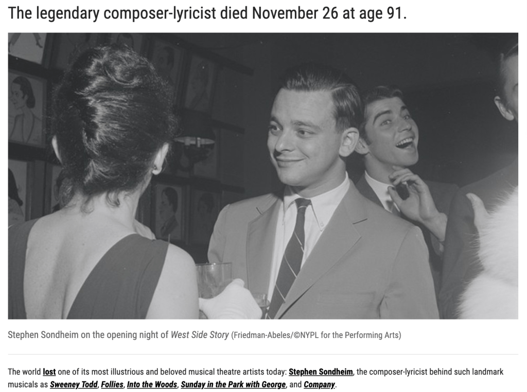 Here is one passing that may have gotten lost among the latest tragic headlines: the death of playwright Tom Stoppard (The Real Thing, Rosencrantz and Guildenstern are Dead).  Stoppard wrote a favorite of mine, Arcadia, which I saw the original production of in NY– a brilliant piece of writing about a teen girl who discovers the mathematical calculation for the end of the world.  A couple of years ago, my friends Kiki & David Gindler took me to see Stoppard’s last play on Broadway, Leopoldstadt. Although they had seen it before they picked it for me and took me as their guest.