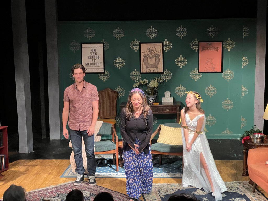 My 2023 began with both Nell and Sam prepping me for an audition.  I haven’t done one in like a million years.  I was trying to learn the lines in the cafeteria at Mountain High, wet and freezing and stuck in Frankenstein monster ski boots.  I almost missed the audition slot, trying to jam in a ski trip the same day, predicting that it wouldn’t matter; I would not get cast. I might even be swallowed up through a crack in the living room floor on zoom. I was wrong on both counts. I was cast in something that I didn’t have to produce or direct or write myself.  The role was a cleaning lady named Cassandra that, like her mythological inspiration, predicts disaster at every turn, especial climate ones, but nobody listens to her warnings. In film production we assume impending doom every Thursday when paychecks are supposed to materialize.  I am chastised at work for running around saying “Nobody listens!” But they truly don’t. Nobody fxcking listens.  Still, it’s amazingly hard to just be yourself in a role, even when the role is fitting — cleaning up everyone’s shit and saying we’re all doomed. Ultimately, this play, Vanya and Sonia and Masha and Spike (by Christopher Durang), worked out really well, took me on a 6-month creative journey, renewed me, and lead me to so many new friends. A family really.  Our little production later had a re-staging in a bigger space and two extensions.  I even got some nice reviews. At the end of the run, Nell came into our cast for seven shows, and we got to work together.   Nice big finish to that experience. And there was more drama to come.